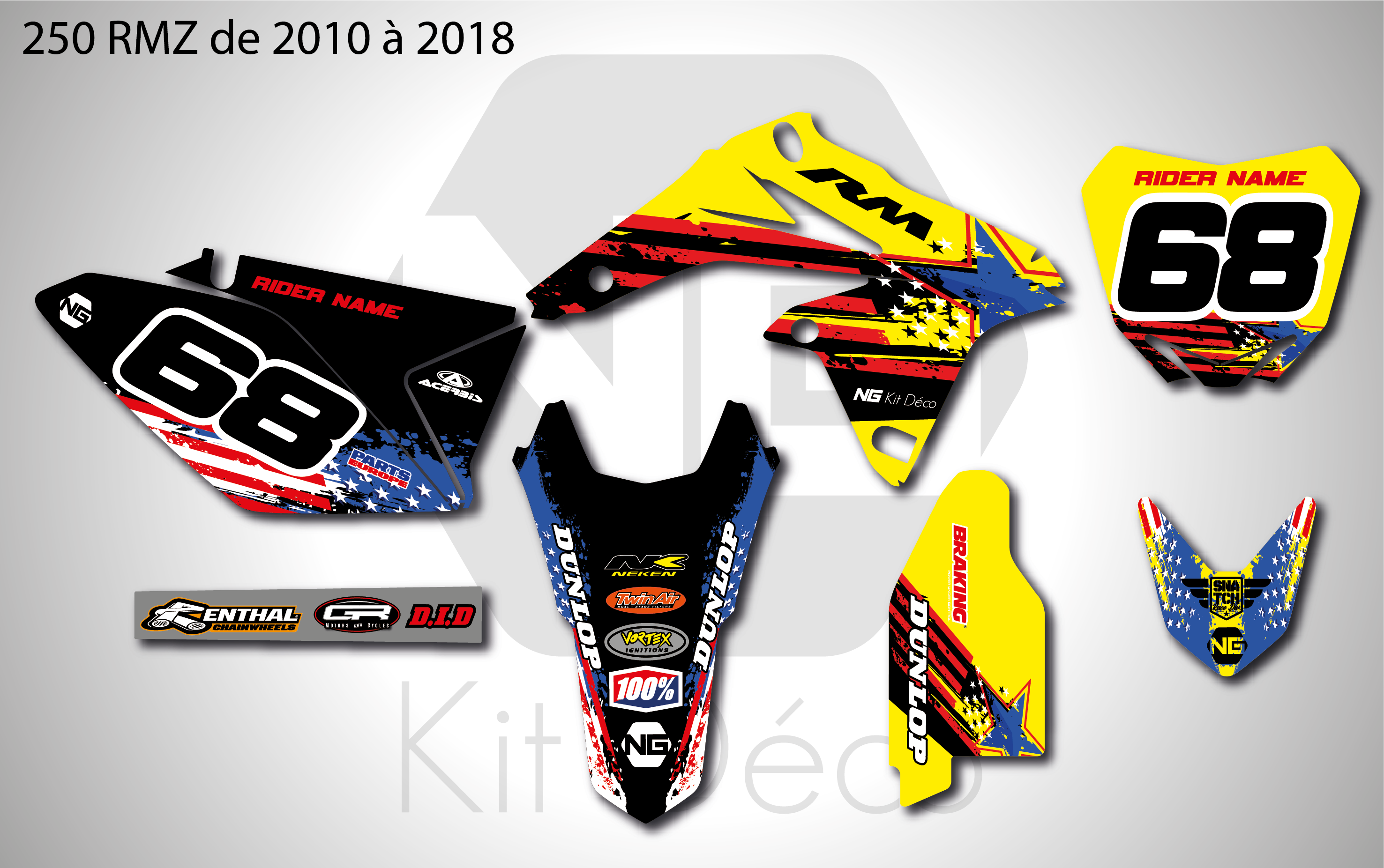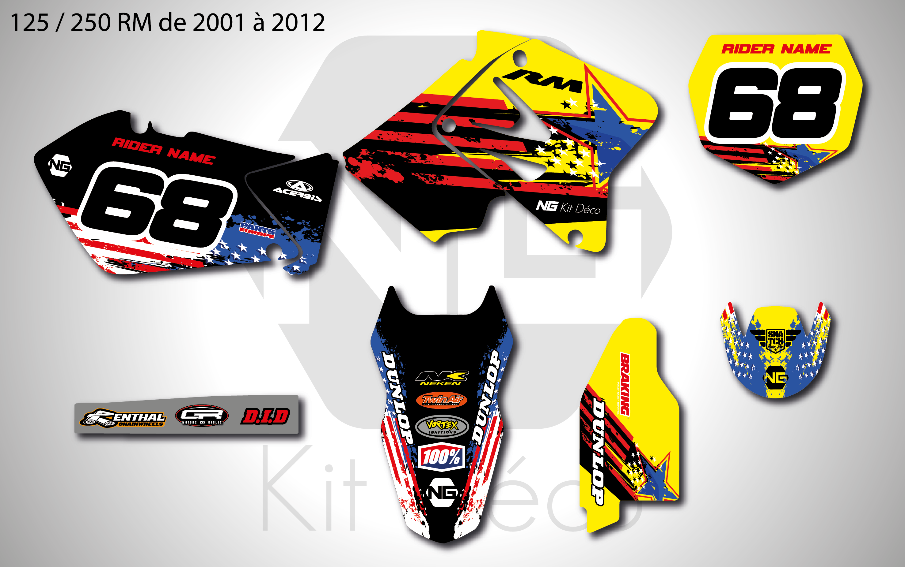 Votre kit déco complet pour motocross Suzuki RM / RMZ comprend