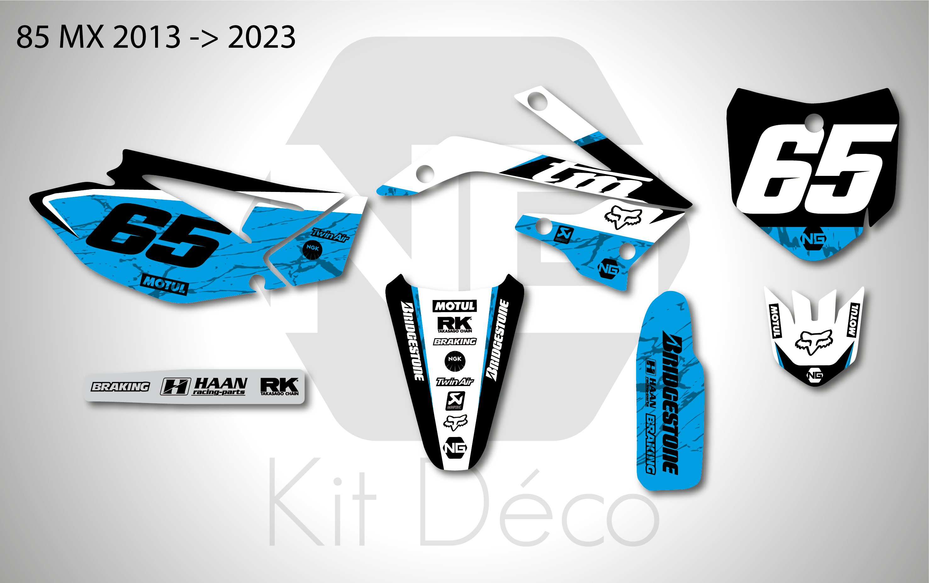 Les images de kit déco sont à titre d’exemple et peuvent varier selon l’année et le modèle de votre motocross.