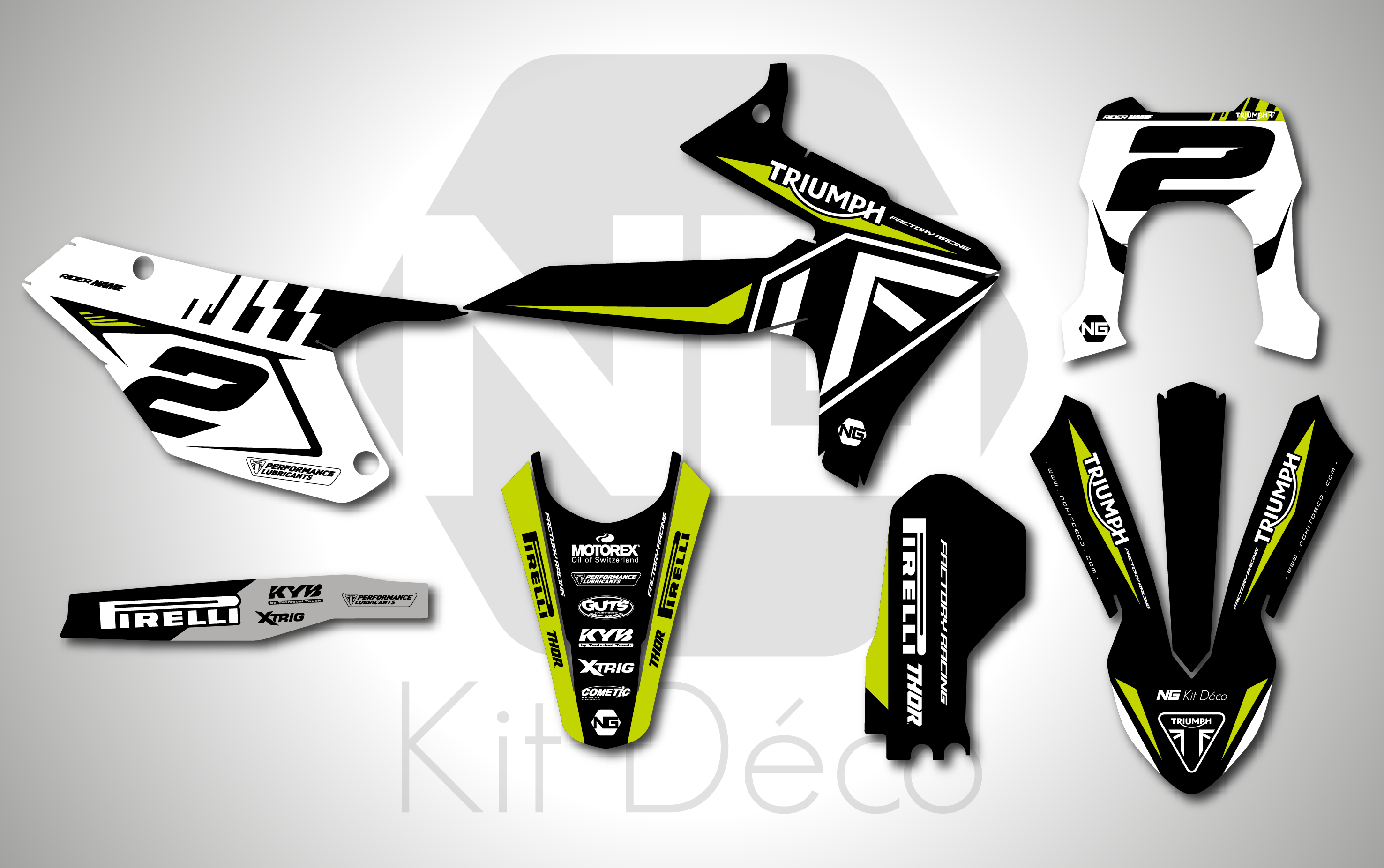 Votre kit déco complet pour enduro Triumph comprend :
