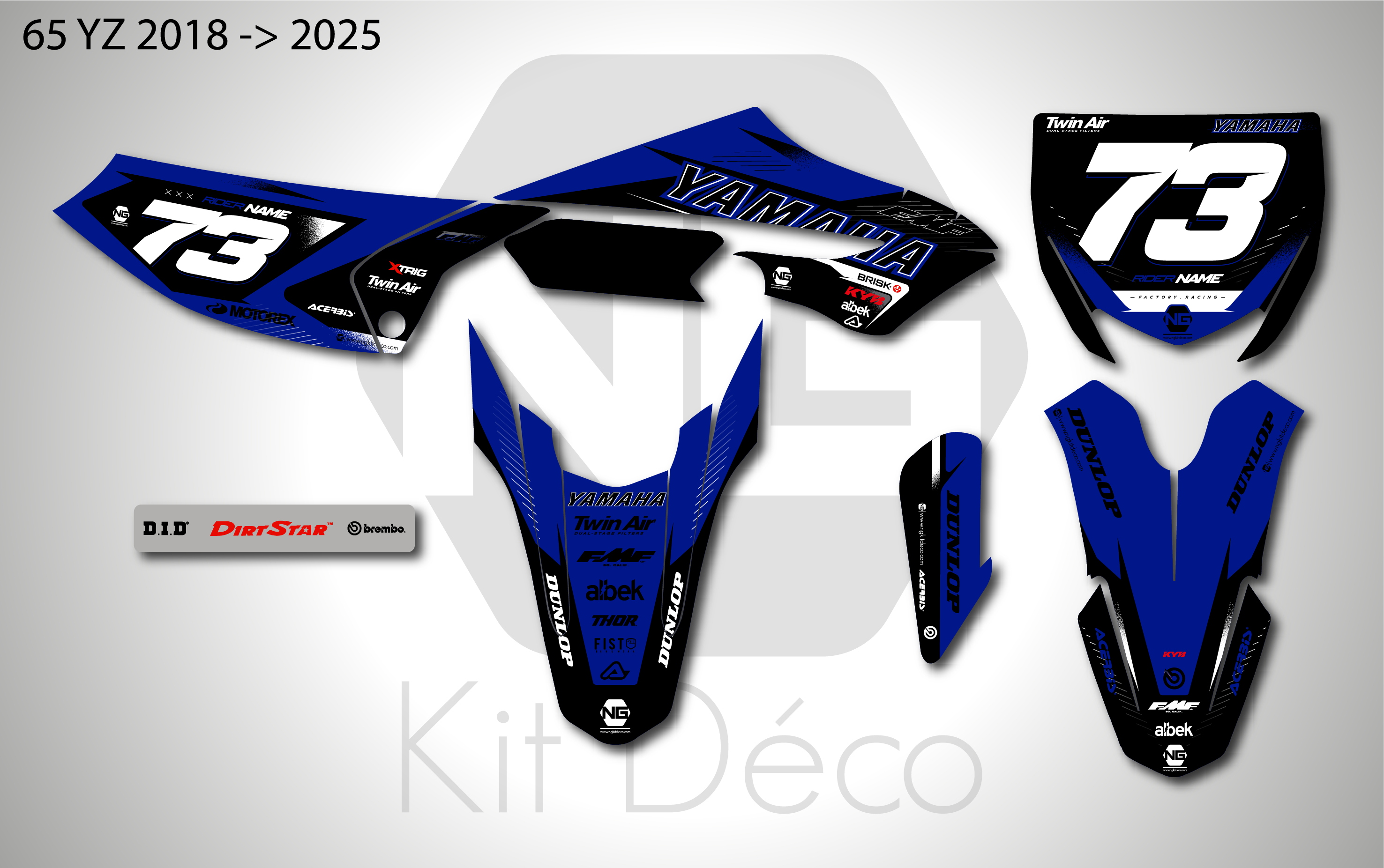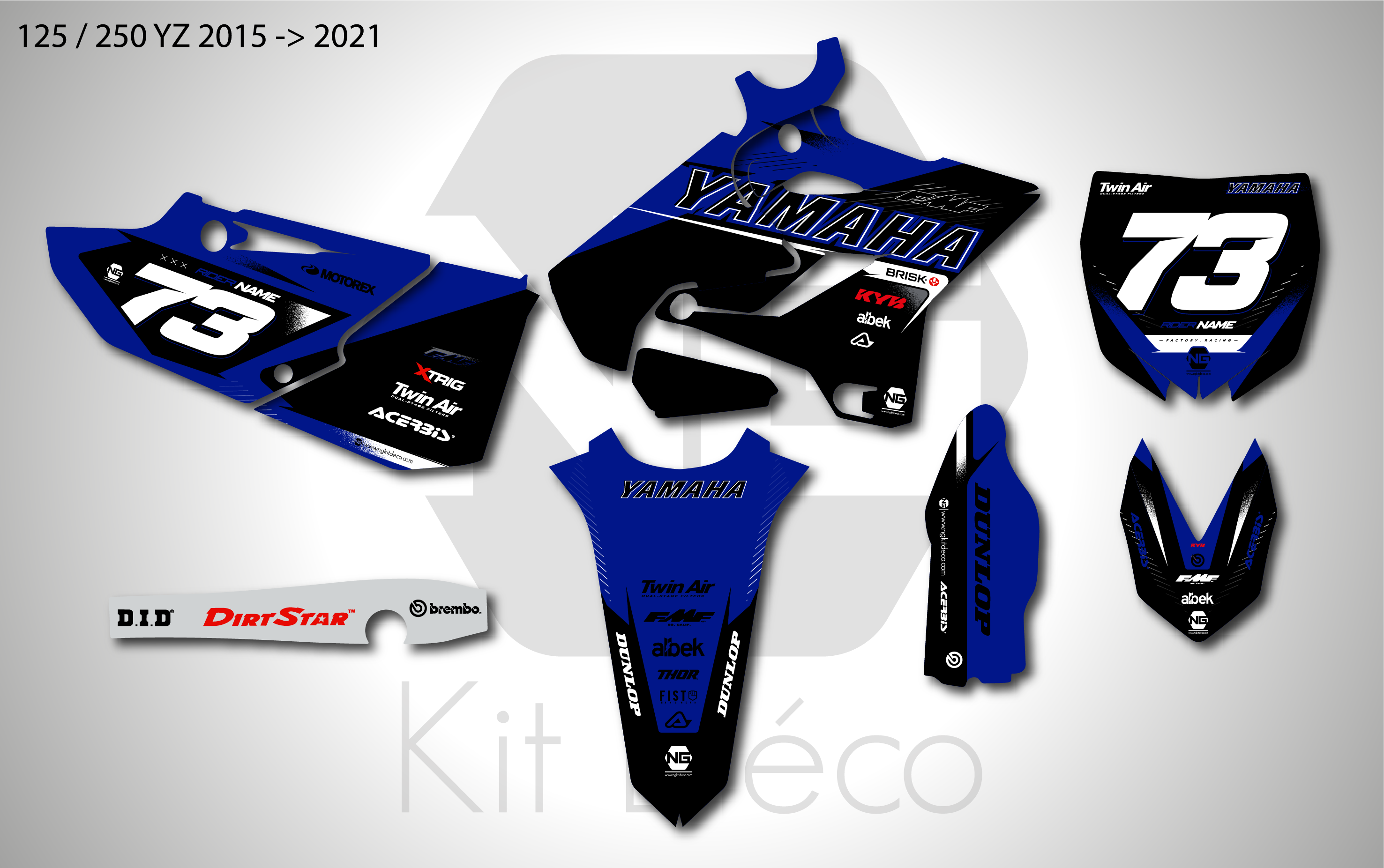 Votre kit déco complet pour motocross Yamaha PW / YZ / YZF comprend