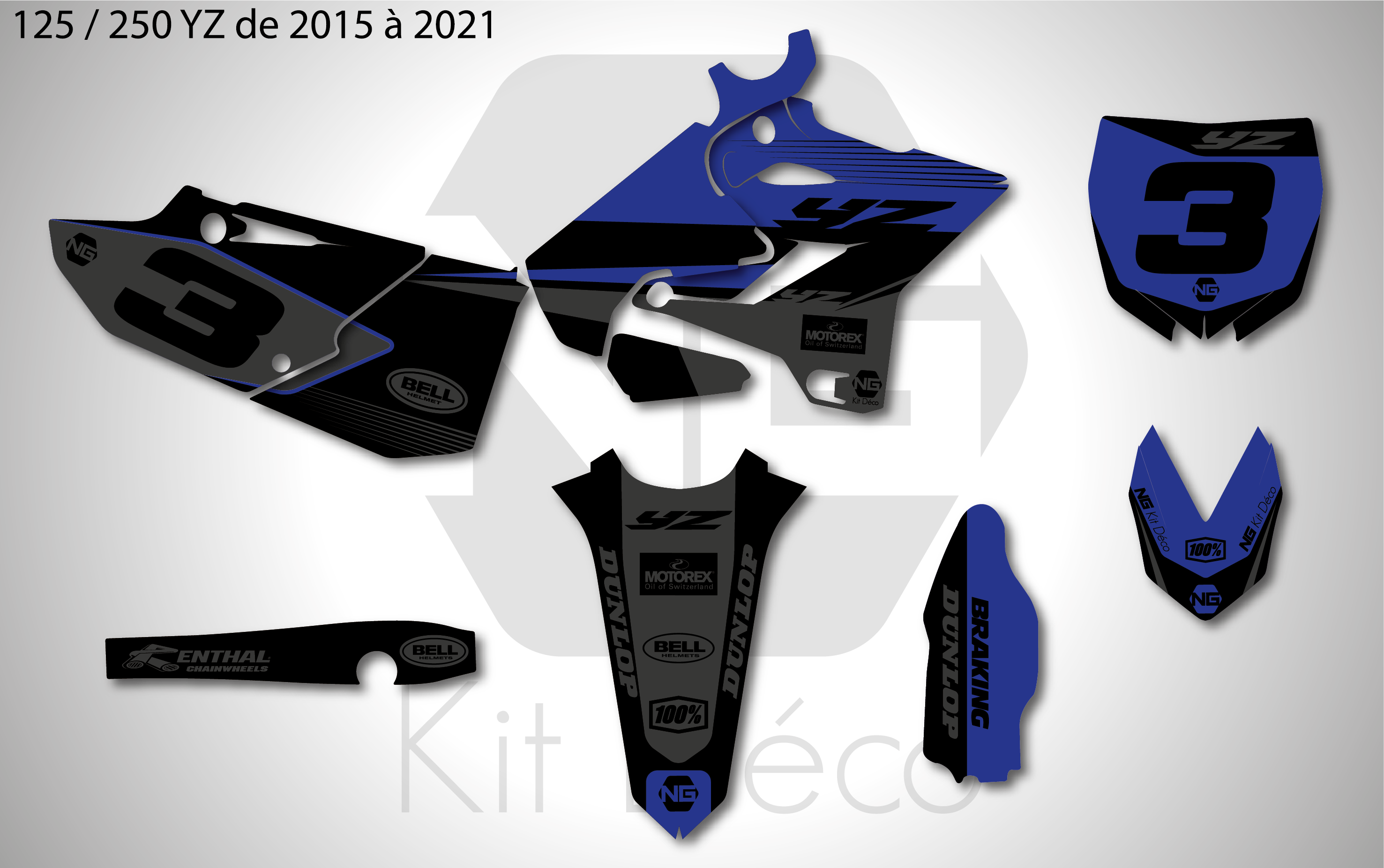 Votre kit déco complet pour motocross Yamaha PW / YZ / YZF comprend
